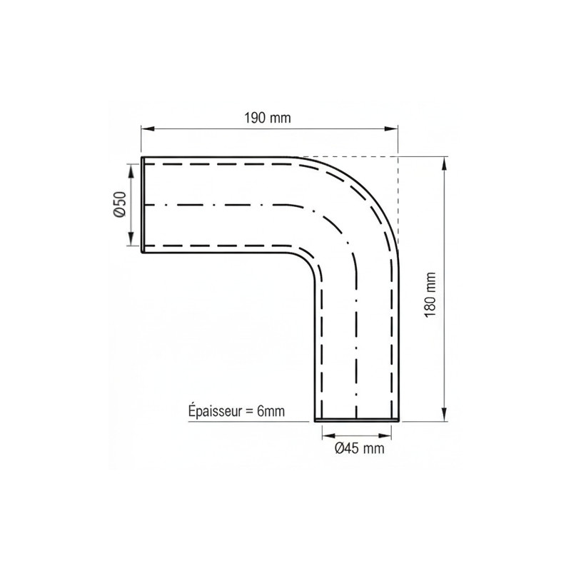 Manicotto Silicone Curva 90° Ø45/50mm - 190x180mm - 4 Strati VMQ Rinforzato